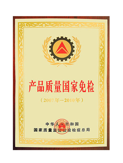產(chǎn)品質(zhì)量國(guó)家免檢證書